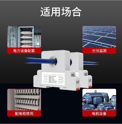 应用领域: 广泛应用于电力,通信,交通,环保,石化,钢铁等领域中,用于监测交直流设备的电流或电压 的消耗情况。标准 RS-485 数字接口输出,实现与计算机、PLC、工业网关、触摸屏等上位机的互联。