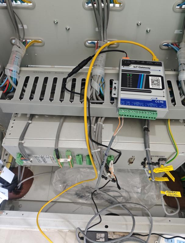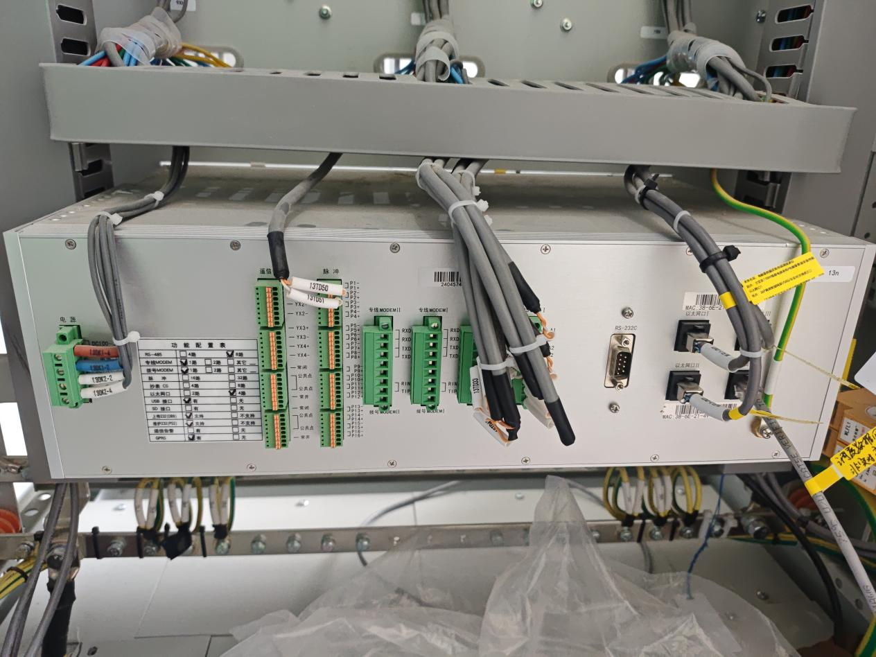现场安装实施,电能量采集终端通过串口接入通讯管理机,通讯管理机供电布线,上层网口modbus TCP输出布线