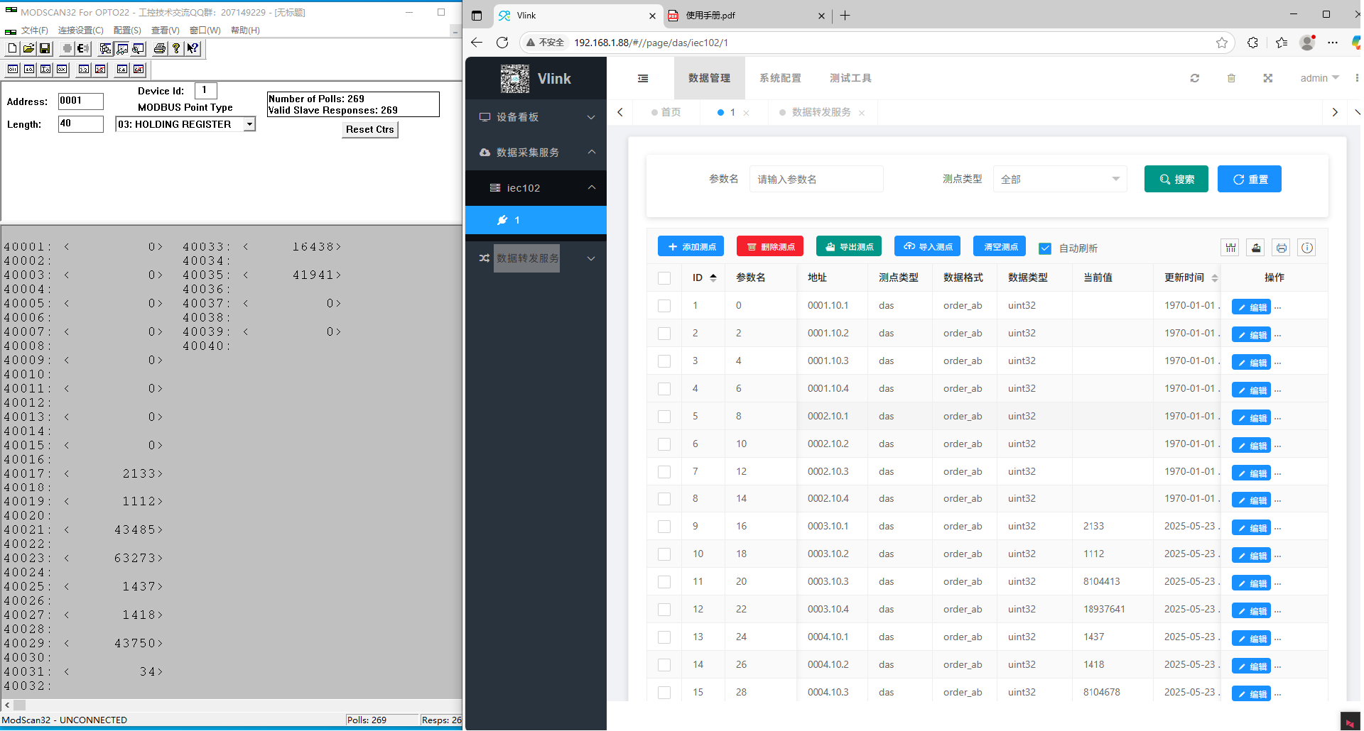 根据提供的对应协议说明及点表信息,上位机配置相关点位,对接调试后,实施采集。